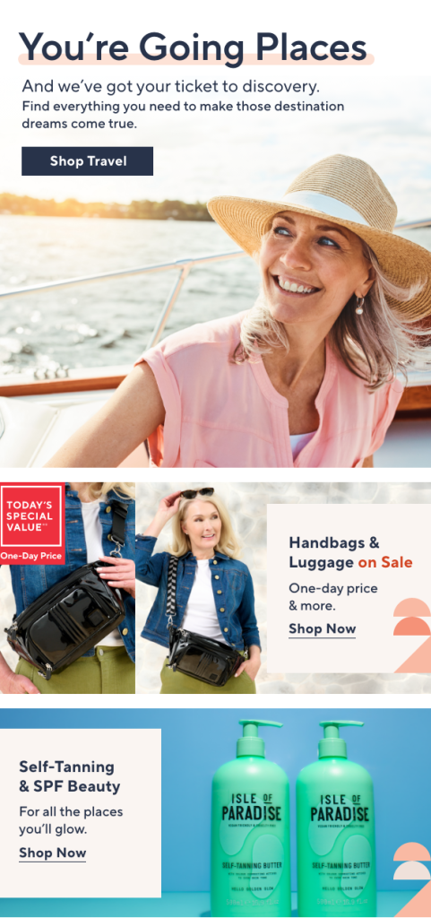 At QVC, I took the lead in messaging the business’ top sales priority for the day (Today’s Special Value) from an omni-channel approach. Read on to see a few campaigns I’m especially proud to have executed.